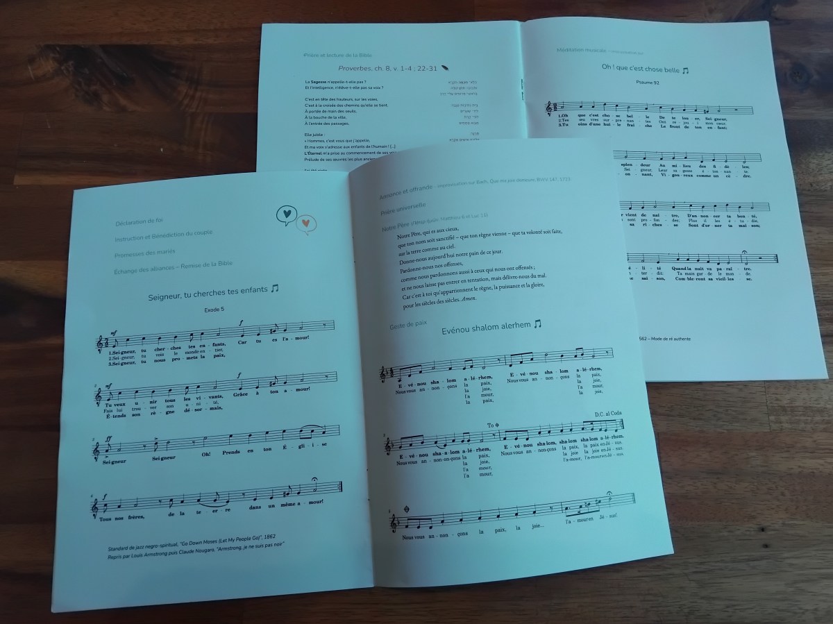 Notre âge est celui des amours, et il arrive qu’on finisse par se marier — idéalement avec ensuite une célébration au temple, pour recevoir la bénédiction de Dieu sur cette alliance. Mais notre âge est aussi celui où nos grands-parents décèdent, malheureusement. Une génération après l’autre, nous prenons le relais avec confiance. Voici quelques idées pour réaliser un livret qui accompagnera ces cérémonies.