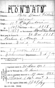 René Edmond Frédéric Mondain (1898 – 1918) est un étudiant en théologie. L’article ci-dessous est publié dans Le Semeur de octobre 1918, rubrique Tablettes d’or. L’article indique qu’il est né le 28/01/1898 à Antananarivo, Madagascar, mais sa fiche de décès sur Mémoire des Hommes indique 08/01/1898. Il est tué le 27 mai 1918. Sa tombe est aujourd’hui à la nécropole nationale Douaumont, n°3703.